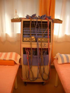 その微弱な電気を外部から通電することで治癒力を促進させる治療法です。