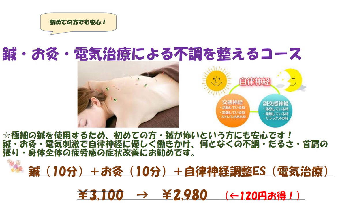 そこで!!!あかね接骨院では“自律神経のバランスを整える”電気をかけその方の症状に合わせて治療メニューを考えていきます。