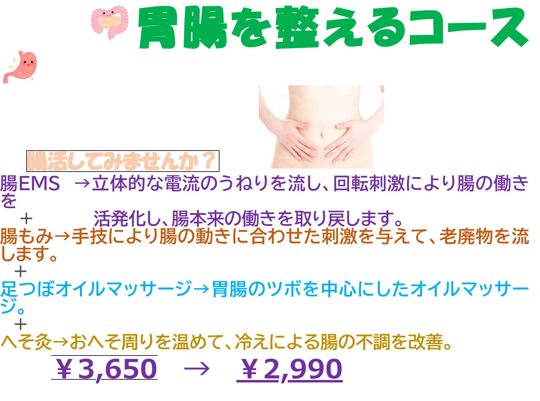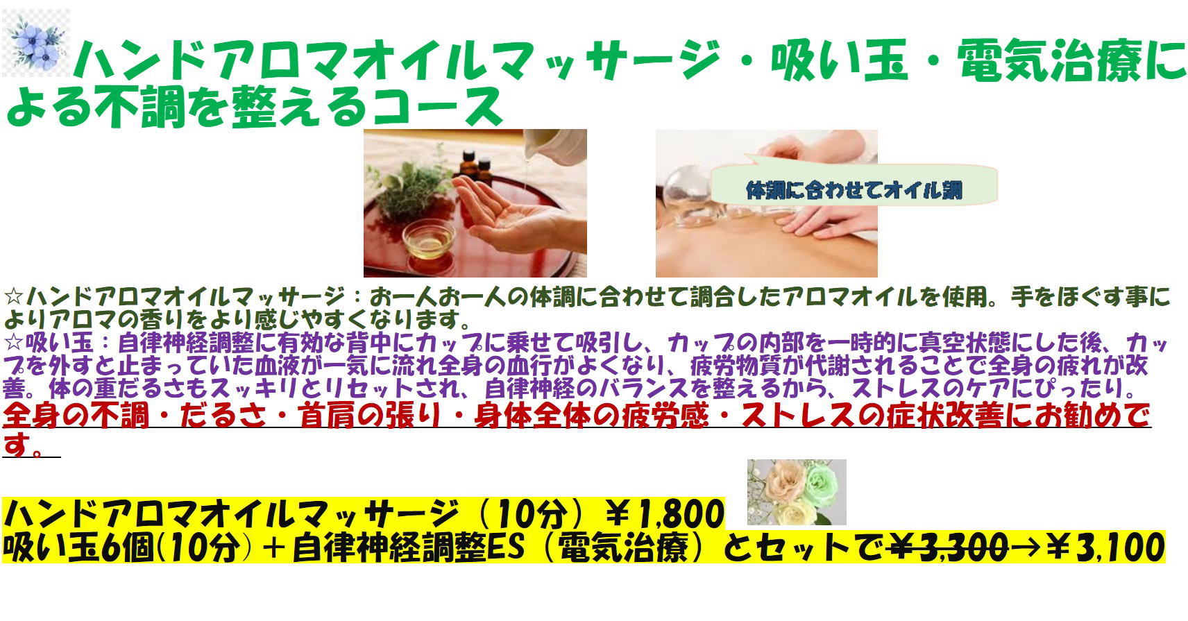ハンドアロマオイルマッサージ・吸い玉・電気治療による不調を整えるコース